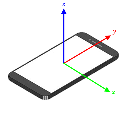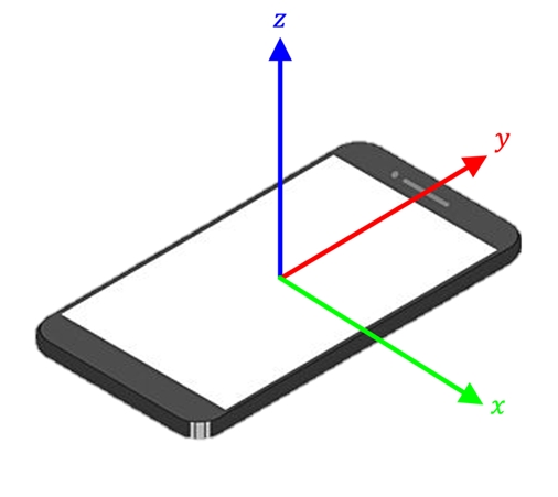 In Android and iOS, the physical orientation and motion of the device are measured using a three-dimensional coordinate system with three axes: X, Y, and Z. These axes represent different directions: